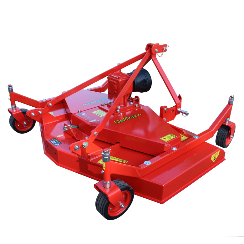Del Morino FMRD 120-150-180-215 igényes, olasz gyártmányú fűnyíró adapter. Előre szerelhető, hátsó irányú szórással 12-70 LE teljesítményű traktorhoz.