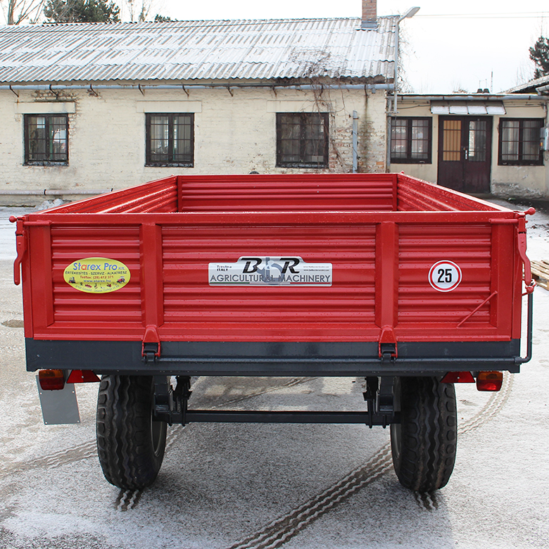 Bellucci & Rossini 100 2ART 3-irányban billenthető pótkocsi. A 2ART szériába tartozó pótkocsi kéttengelyes, sík platós, laprúgós felfüggesztéssel, hidraulikus fékkel felszerelve. Az oldalfalak levehetőek, a billentés hidraulikusan történik. Kormányzott mellső tengely forgózsámollyal, három irányú billenési mód flexibilis csövekkel és gyors összekapcsolással.