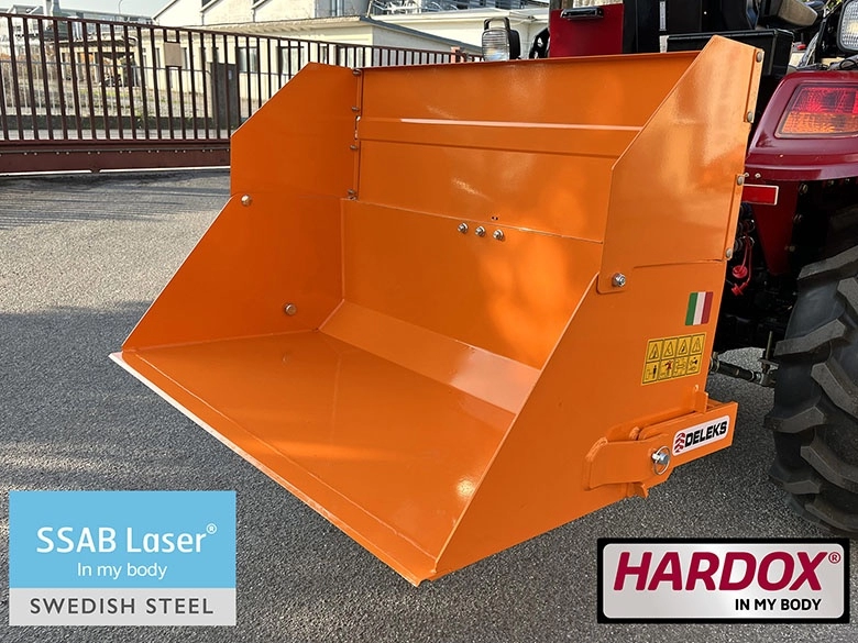 Olasz gyártású DELEKS BUCKET 120-140 mechanikus billentésű szállítóláda, 14-40 LE teljesítményű kis és közép méretű traktorokhoz lett kifejlesztve. Kifejezetten ajánlott az alábbi traktorokhoz: New Holland Boomer 25-30 vagy TI13, John Deere 1-2 Series, japán traktorokhoz pl. Kubota B és BX, Iseki TM–TH, Yanmar stb.