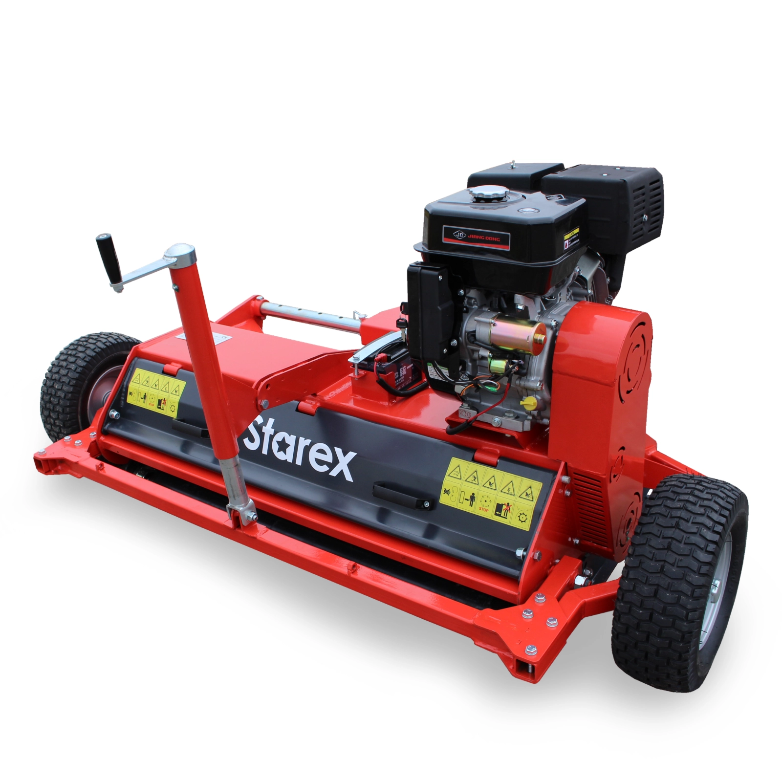 STAREX ATV-120N nyitható fedeles, saját motoros vízszintes tengelyű, kalapácsos vagy lengő Y-késes szárzúzó mulcsozó quadokhoz, ATV-khez. A négyütemű benzinmotor 15 LE teljesítményű, elektromos önindítóval és kézi indítással rendelkezik. A kalapácsos kivitel a gyomosabb, gazosabb területek tisztítására, míg az Y-késes inkább a gyepfelületek igényes ápolására alkalmas.